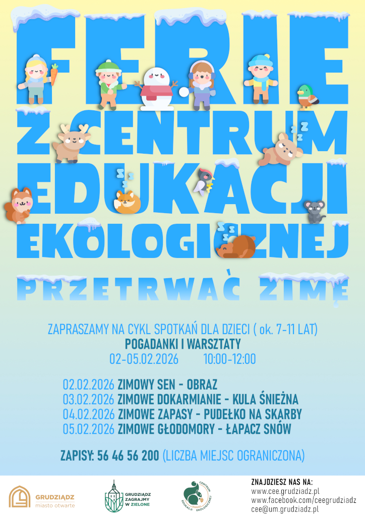 FERIE Z CENTRUM EDUKACJI EKOLOGICZNEJ 2026 Już niebawem rozpoczną się ferie zimowe w naszym...